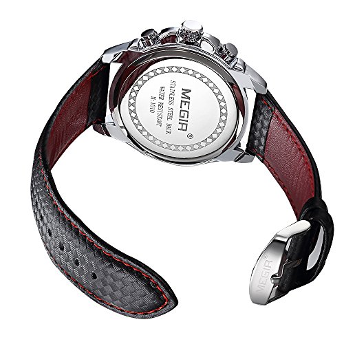 -. Title : Megir Mens White Dial Army Military Analog Display Quartz Wrist Watch with Leather Strap