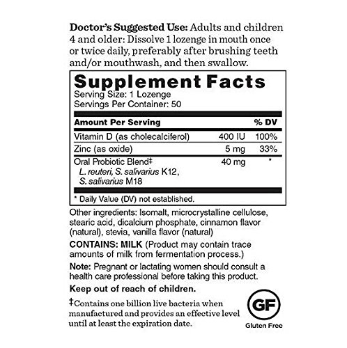 PROMOTES HEALTHY TEETH, GUMS, AND FRESH BREATH with three beneficial strains of live probiotics that help promote a healthy bacterial balance in the oral and sinus regions.
