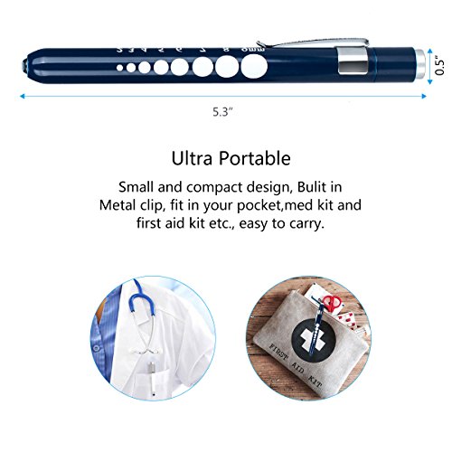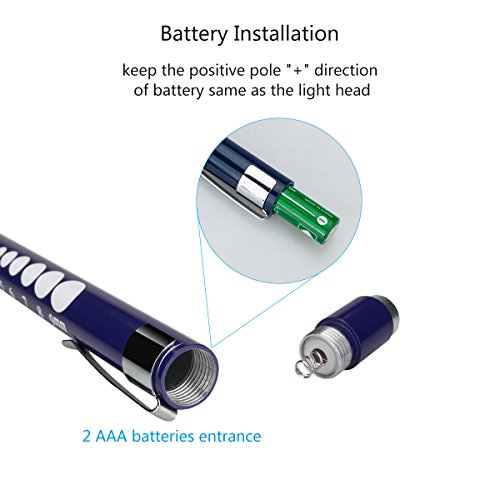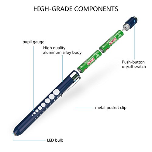Opoway Nurse Penlight with Pupil Gauge LED Medical Pen light for Nurses Doctors with Batteries Included 2ct, Silver and Blue
