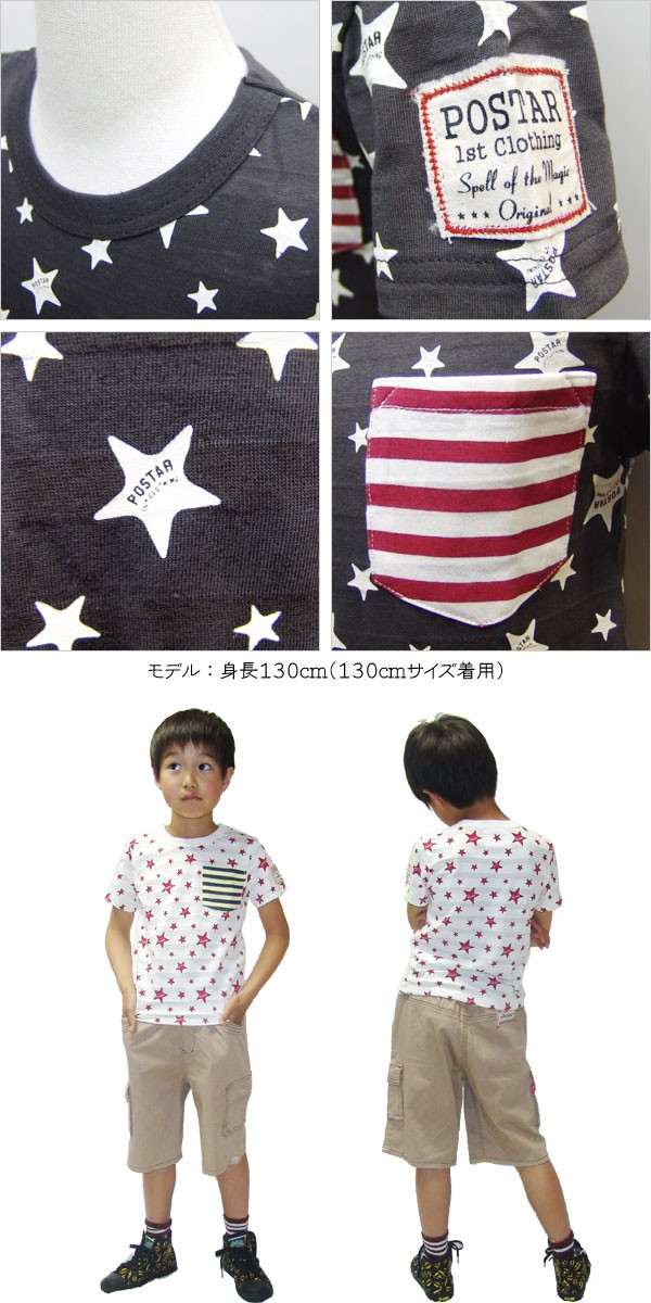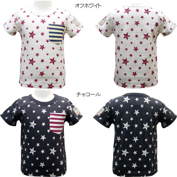 コメント:大小様々な星がいっぱいプリントされたにぎやかTシャツ!※80~95cmは左肩スナップボタン付きです。