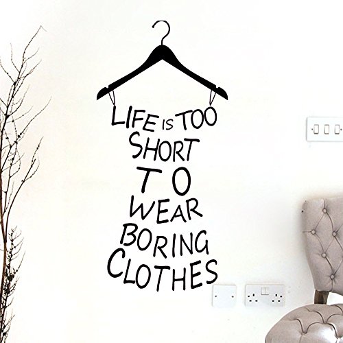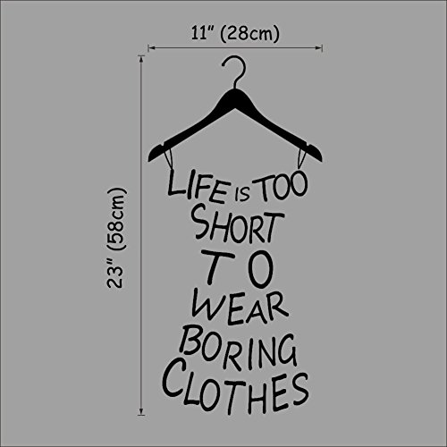 Hot Wall Sticker Home Decor Quotes Life Is Too Short To Wear Boring Clothes Custom Vinyl Wall Art Decor Mural Decals Wall Lettering Saying Quotes Dress Shape Stickers DIY for Girls Bedroom (Black)
