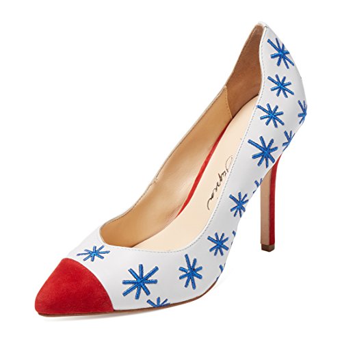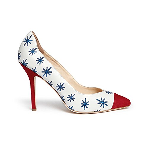 Features: Leather upperSuede cap-toe and heelEmbroidered throughoutCovered heelLeather insoleHeel height: 4.25", platform sole 0.5" 0 |