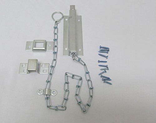 -. Brand : Shed Windows and More -. EAN : 0700254847481 -. Feature : Plate measures : 5" x 2" complete length of base w/pin 6" / Chain: is 25" long, 30" with base & chain / Comes with all the hardware shown in photo / Heavy Duty Construction -. Label : Shed Windows and More -. Manufacturer : Shed Windows and More -. MPN : chainbolt -. PackageQuantity : 1 -. PartNumber : chainbolt -. ProductGroup : Home Improvement -. ProductTypeName : HARDWARE -. Publisher : Shed Windows and More -. Studio : Shed Windows and More -. Title : 6" Chain Bolt Shed Door Heavy Duty Door Chain Bolt Chicken Coops Barns Sheds -. UPC : 700254847481