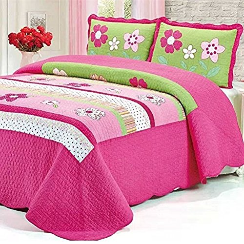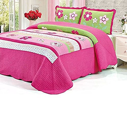 Brandream Pink Girls Floral Bed Quilt Set Kids Bedding Set Queen Size