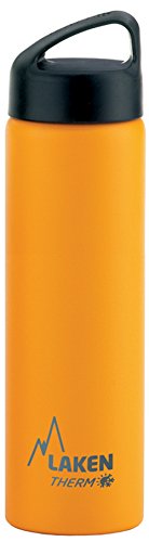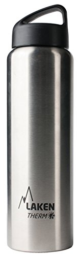 This beautiful and versatile Laken Thermo Classic is a vacuum insulated stainless steel water bottle that can hold cold drinks chilled for up to 20 hours and hot beverages hot for up to 10 hours. It has a double layered stainless steel construction that provides excellent thermal insulation, and an external threading for comfortable drinking and pouring. The wide screw-on cap has a jaunty handle for easy opening and closing and an insulating layer for better performance. The body of this wide mouth bottle is made up of 18/8 food grade stainless steel that is chemically inert and makes sure that your beverages remain fresh and safe for long time periods. These bottles are BPA, phthalate and lead free with no inner liner. The interior is 100% INOX so there is no leeching effect as is the case with plastic bottles. Our stainless steel bottles are inert to hot and cold beverages such as coffee, tea and soups, as well as alcoholic beverages and acidic fruit juices. They are completely taste and scent neutral. Laken wide necked Thermo bottles can also be used with our Jannu flip drinking cap for all beverages except hot or carbonated beverages.