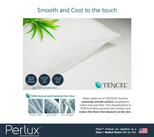 King Size Perlux Hypoallergenic Tencel 100% Waterproof Pillow Encasement - Vinyl, PVC, Phthalate and Pesticide Free - Includes Set of Two