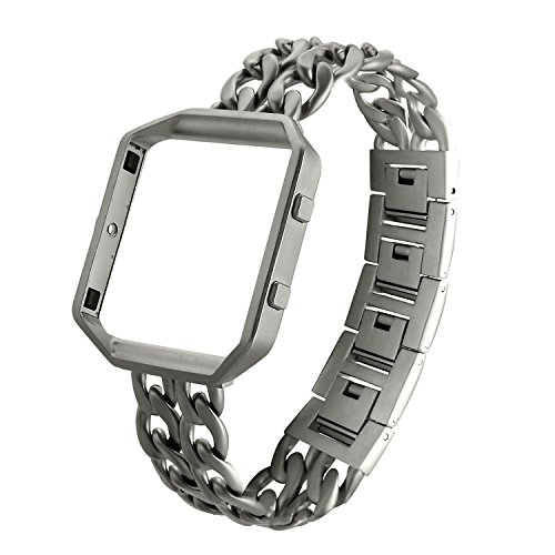 Fitbit Blaze Bands, NO1seller Top Replacement Stainless Steel Cowboy Style Watch Band Chain Strap with Metal Frame for Fitbit Blaze Smart Fitness Watch