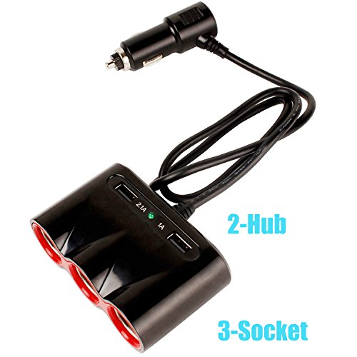 -. Title : Warmstor 1 to 3 Car Cigarette Lighter Splitter with 120W Car Cigarette Lighter Power Port 3-Socket & DC 5V 3.4A Dual USB Car Charger Adapter