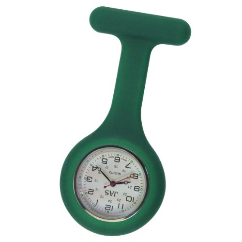 JAS Unisex Nurses Lapel Watch Silicone (Infection Control) Forest Green