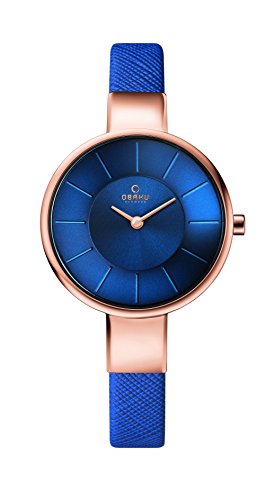 Obaku Women's Quartz Stainless Steel and Leather Dress Watch, Color:Blue (Model: V149LXVLRA)
