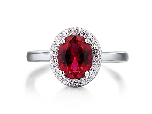 -. Binding : Jewelry -. Brand : Diamond Classic Jewelry -. Department : womens -. Feature : Beautiful Halo Style Ring Features Oval Shape Created Ruby / 9x7 MM Oval Shape Lab Created Ruby / 16 Round Lab Created White Sapphires 1.75 MM Each / Rhodium Plated Sterling Silver Setting -. ProductGroup : Jewelry -. ProductTypeName : FASHIONRING -. Title : Lab Created Oval Ruby Ring in Sterling Silver with Created White Sapphires