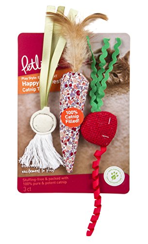 Studio : Quaker Pet Group Publisher : Quaker Pet Group Binding : Misc. Product Description Petlinks Happy Harvest set of 3 adorable vegis for kitty! All 100% catnip filled with our pure and potent Our catnip is produced without chemicals or pesticides. Most cats respond to catnip with a burst of energetic activity followed by a perfectly calm mellow period Ribbons, feathers and fringe add to the attraction for your felines. Natural feathers are a favorite and along with the textural differences in these 3 toys you can't go wrong. Petlinks gives pet parents the best of all worlds: innovative products, stylish designs, environmental responsibility, and exceptional value with a variety of toys, scratchers and beds to meet a pet's need for play, scratching, wellness, retreat, rest, and fun! Petlinks products are designed to meet child safety standards and are backed by our 100% satisfaction guarantee. If a customer is dissatisfied with a Petlinks product for any reason, we will replace or refund it. 0