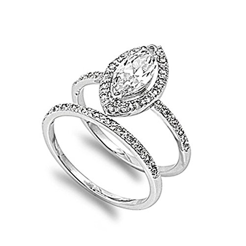 -. Title : Sterling Silver Engagement Ring Wedding Band Bridal Set Marquise Sizes 5-10