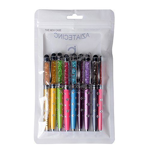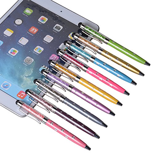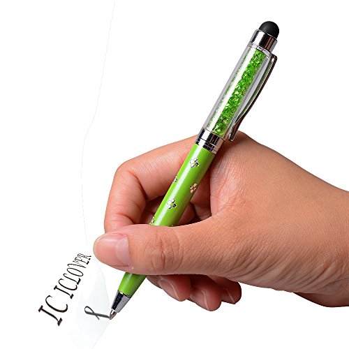 IC ICLOVER 2 in 1 [Stylus Pen + Normal Writing Pen] Universal Capacitive Stylus Touch Screen Pen with Crystals Rhinestone and Engraving Flowers for Apple Sumsung and other Touch Device-9PCS