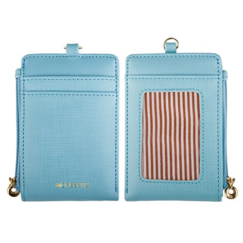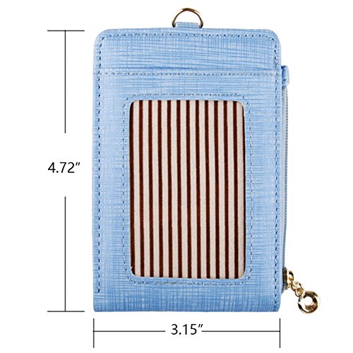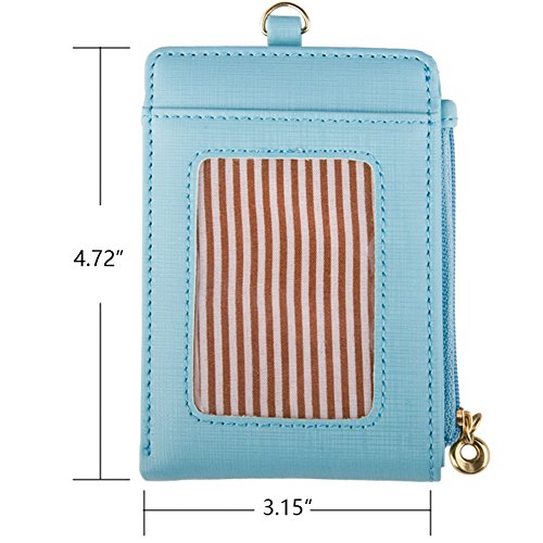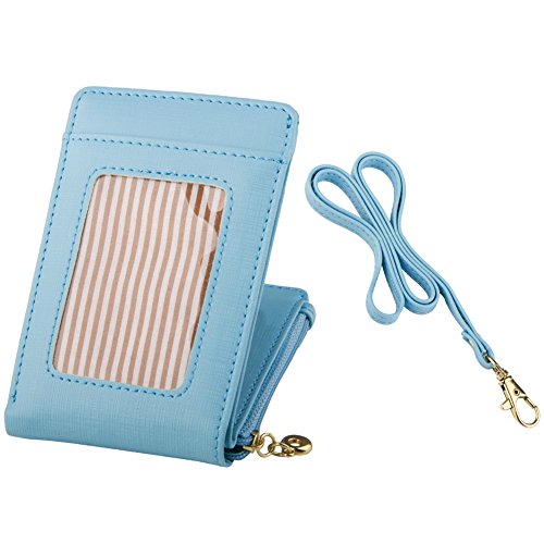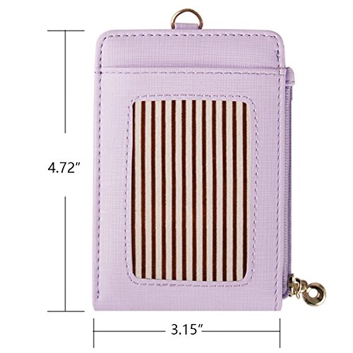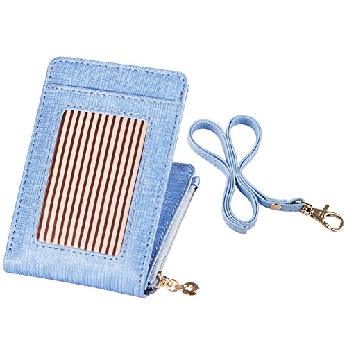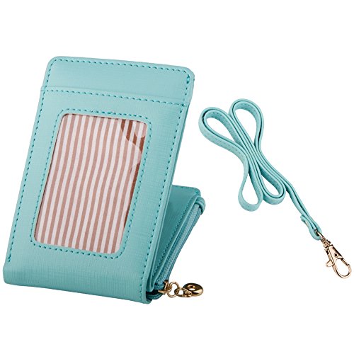 Product DescriptionSpecification: 100% Brand New Material: Faux Leather Holder Dimension:4.72"L x 3.15"W Lanyard Dimension:35.4"full round length Item Weight:0.22 pounds Structure: 1 ID window, 2 card holder,1 full length compartment for bills and coins Style: Sweet,Cute Package includes: 1 * card card holder Colors: Pink,Green,Purple,Royal Blue,White,Blue0