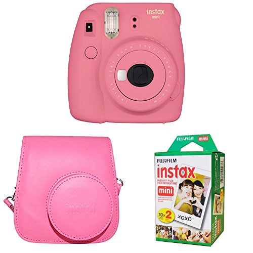 Fujifilm Instax Mini 9 Instant Camera with Instax Groovy Camera Case (Flamingo Pink) & Instax Mini Instant Film Twin Pack