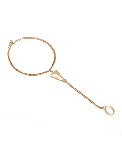 -. Feature : Description: Make an emphatic fashion statement with these exclusive designer toe ring anklets. The trendy geometric design and radiant gold-tone adds to its fashion appeal. Get it today. This piece of jewelry comes with the Voylla assurance of quality and durability. / Length: 11 inches, Width: 0.15 Inches, Weight: 31 gms / Material: Alloy, Colour: Gold / Type: Links