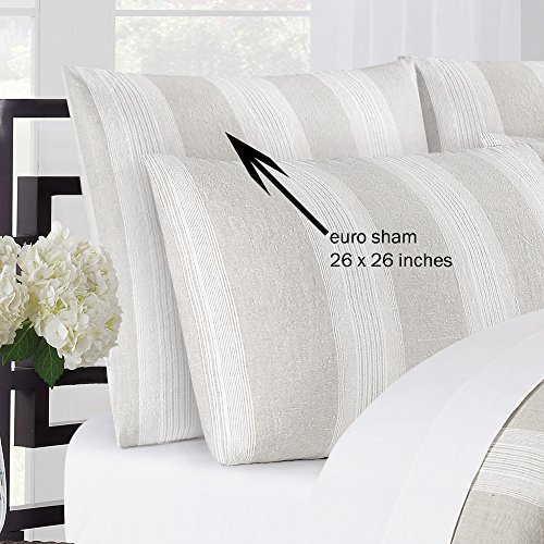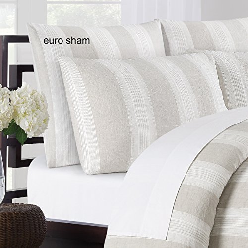 Echelon Home Lst Eur Nat Vintage Stripe Washed Belgian Linen Shams [Pair] , Euro, Natural