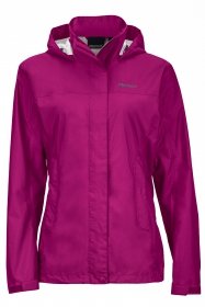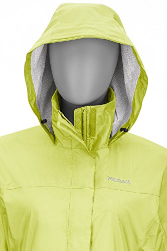 Amazon.com This affordably priced, feature-full women's jacket from outdoor outfitter Marmot will keep you dry when the weather turns nasty, and is equally at home on the mountain trail and city sidewalk. Made of Marmot's PreCip nylon ripstop material, it features waterproof breathability to protect you from rain and perspiration alike, and is 100% fully seam-taped. A full visibility roll-up hood is completely adjustable for a custom fit via Velcro pull tab and elastic cinch cord, and PitZips help you regulate temperature when your heart rate picks up. Features - PreCip Dry Touch material is waterproof and breathable