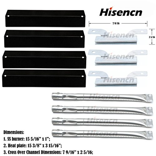 Hisencn Gas Grill Repair KIT Parts SS Burner,Porcelain Steel Heat plate, Carry over Tubes For Brinkmann 810-1420-0, 810-1420-1, 810-1450-0 Gas Grill Models