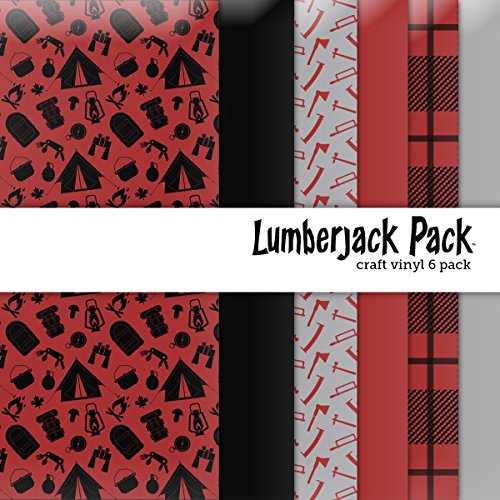 Includes 6 sheets: (1) Red with Black Camping Gear print, (1) Solid Black, (1) Silver with Dark Red Ax print, (1) Solid Dark Red, (1) Buffalo Plaid print, & (1) Solid Silver