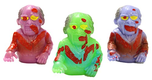 Studio : Fun Stuff Publisher : Fun Stuff Binding : Toy Product Description These super stretchy rubber zombie finger puppets are great for your next zombie gathering! They measure approximately 2.5 inches in height and 1.25 inch wide. The finger hole is 1 inch wide. They are stretchy so they will fit on practically anyone! They are hand painted and will differ slightly from zombie to zombie. Perfect for your next Halloween party! 0