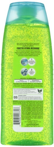 Experience a powerful new burst of hydration. Garnier fructis hydra recharge is the 1st shampoo with encapsulated beads of superfruits goji berry, passion fruit, and kiwi. This revolutionary formula instantly recharges dry hair with high-performance weightless moisture. Hair is weightlessly silky for up to 2 days. Garnier's eco-fructis bottle contains 30% recycled plastic. Recycle this bottle to help decrease landfill waste: sign up at garnierusa.com/green for more information.Feature