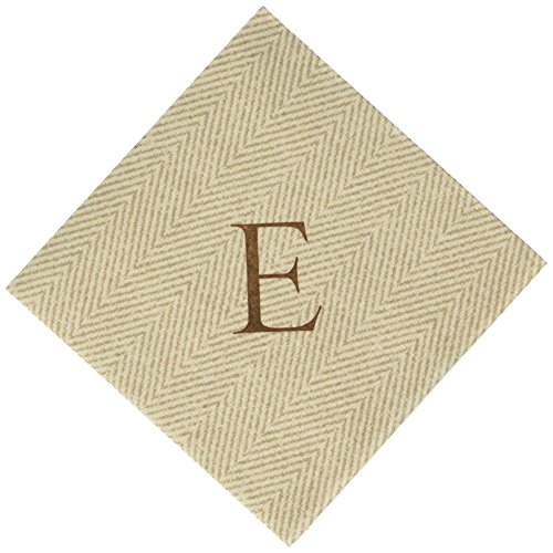 -. Title : Entertaining with Caspari Jute Herringbone Paper Linen Cocktail Napkins, Monogram Initial E, Pack of 30