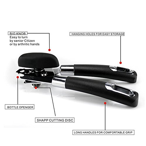 EXTREMELY EASY TO USE: The large knob and the thick ABS handle fit the contour of your palm for a comfy grip. The extra sharp cutting wheel makes opening cans nearly effortless, even for users with the weakest hands.