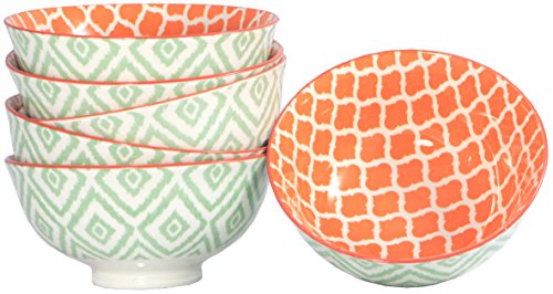 Certified International Chelsea Mix and Match - Small Colored Ceramic Dessert Bowl Set, Green Ikat Design