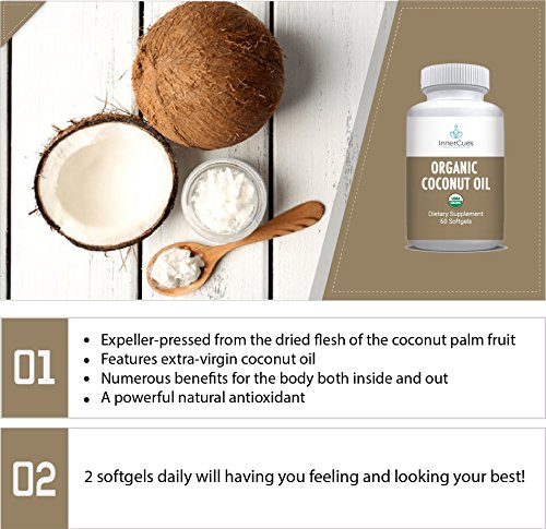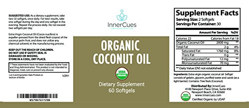 InnerCues Organic Coconut Oil - Dietary Supplement - 60 Soft Gels