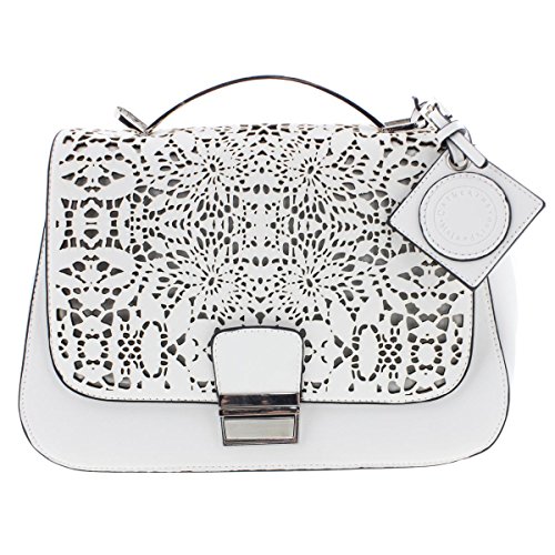 Catherine Malandrino Womens Lola Faux Leather Laser Cut Satchel Handbag