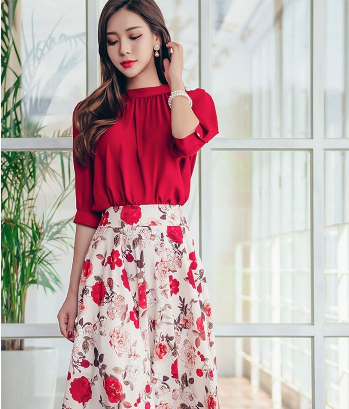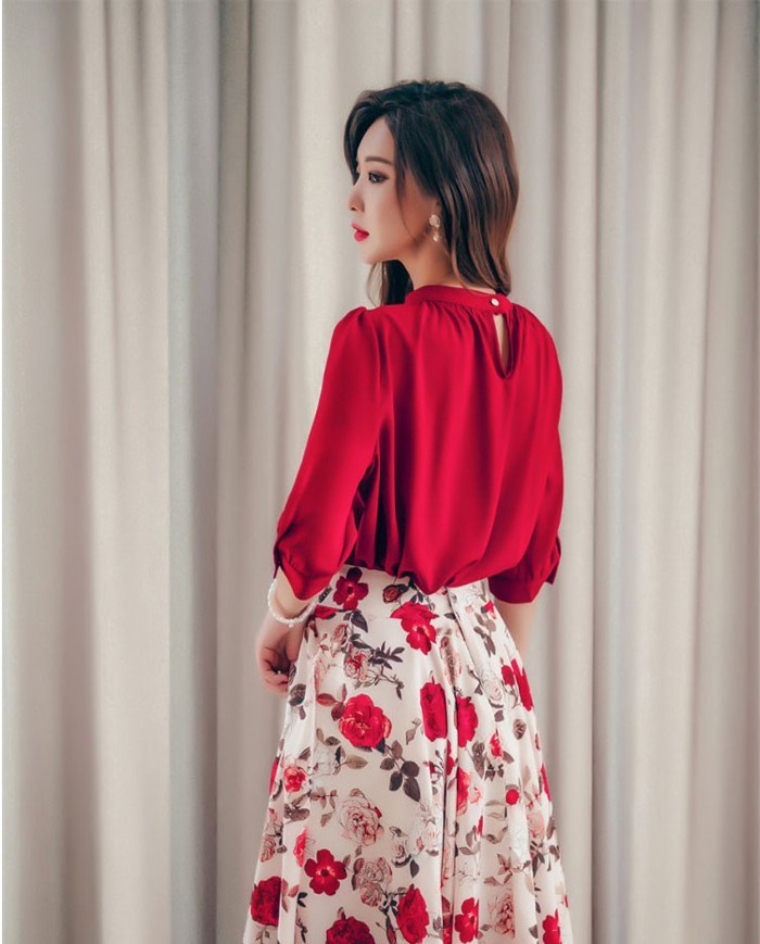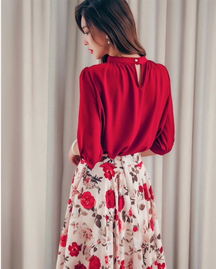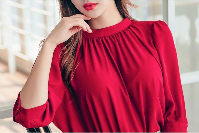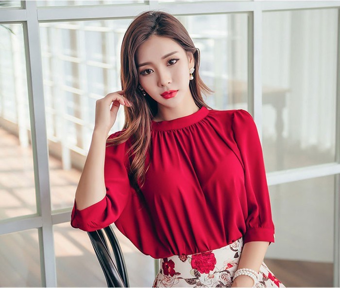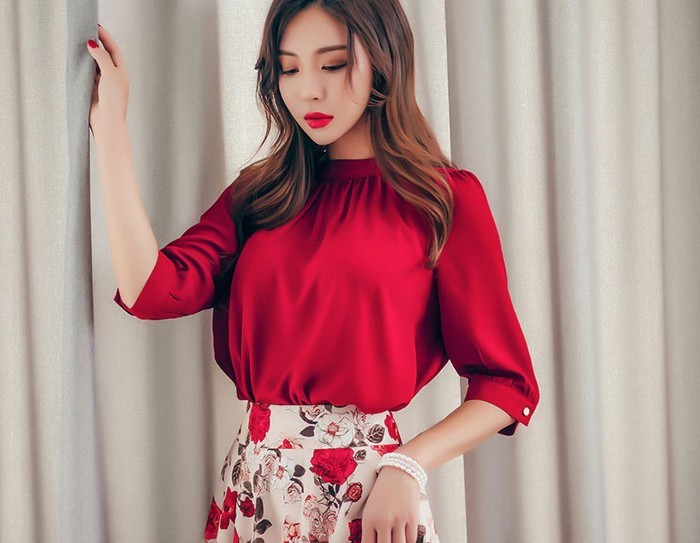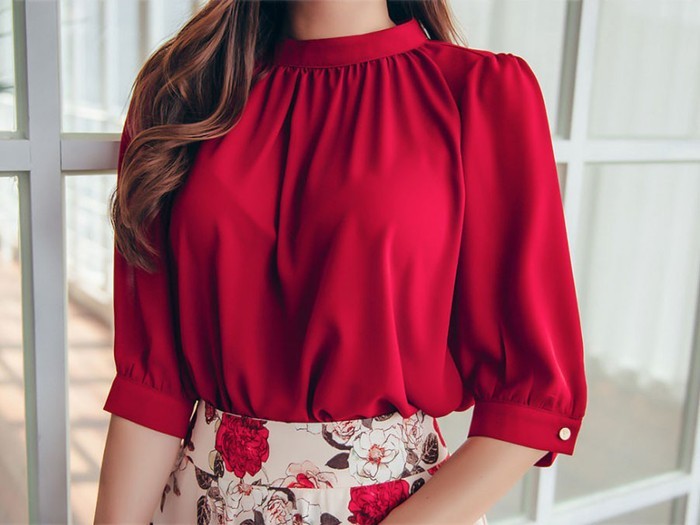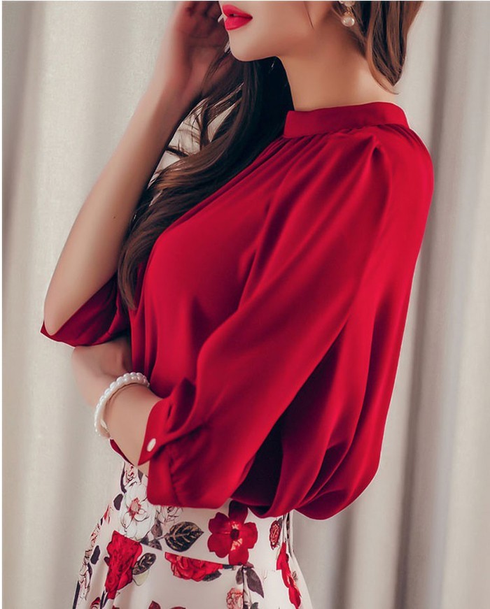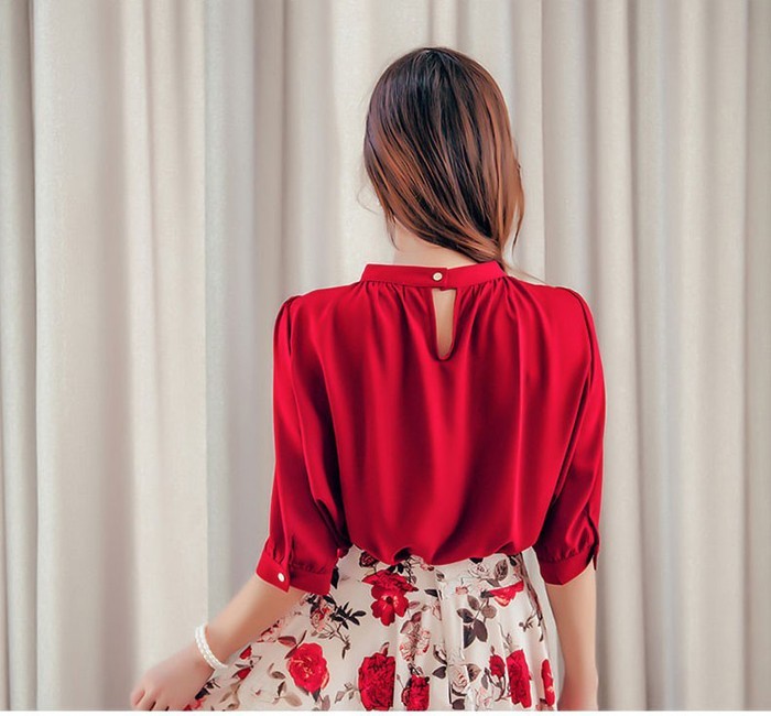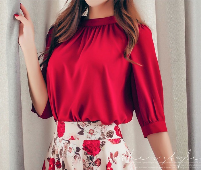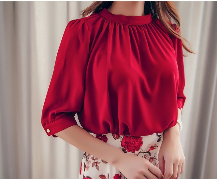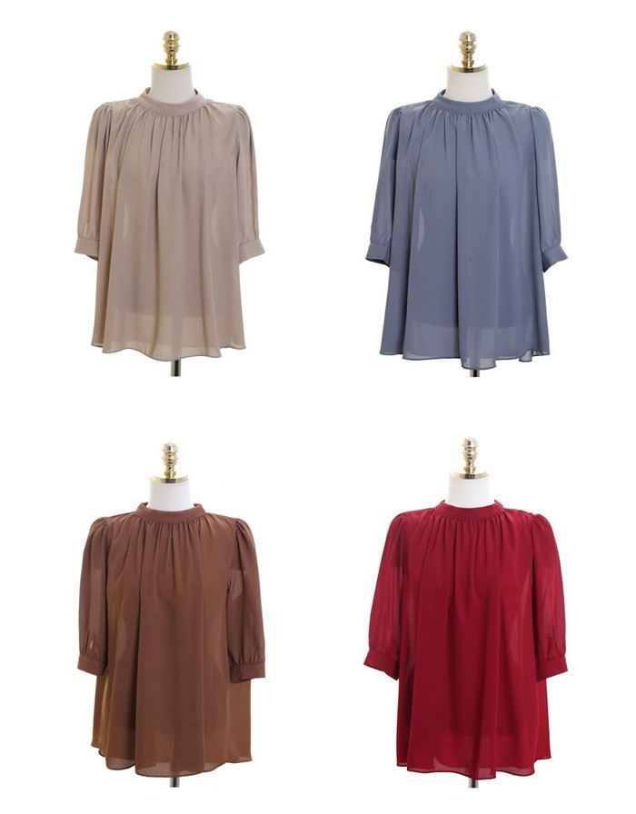 商品名:ブラウス プルオーバー きれいめ 無地 5分袖