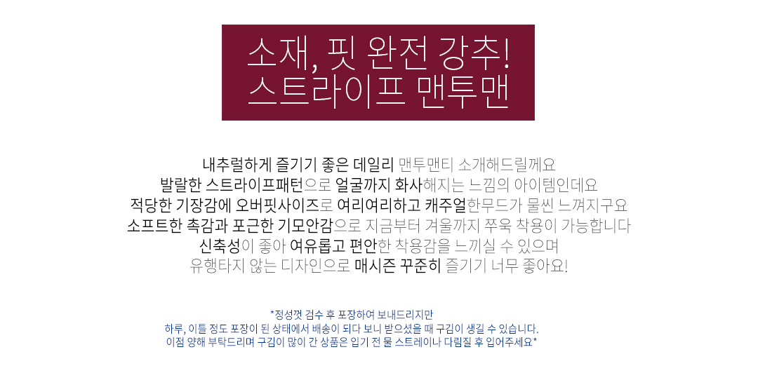 .같은 사이즈라도 체형에 따라 핏감이 조금씩 다를 수 있습니다.