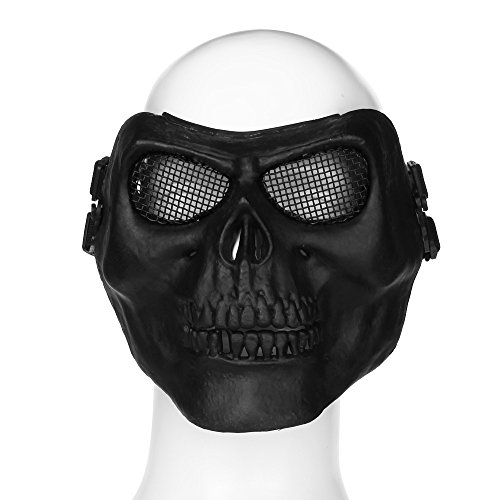 -. Binding : Misc. -. Brand : Flexzion -. Feature : Full face guard mask for airsoft. Airsoft mesh mask never fogs up / Tactical stylish looking. One size fit all / Made of light, soft and high density plastic material. Adjustable strap for fitting / Comfortably fit and allows player to breath freely / Offer well protection, fully cover face & cheek. Great for airsoft, hunting, and war game -. Label : Flexzion -. Manufacturer : Flexzion -. ProductGroup : Sports -. ProductTypeName : SPORTING_GOODS -. Publisher : Flexzion -. Studio : Flexzion -. Title : Flexzion Tactical Airsoft Mask Paintball Game Full Face Protection Skull Skeleton Safety Guard in Silver for Outdoor Activity Party Movie Props Fit Most Adult Men Women