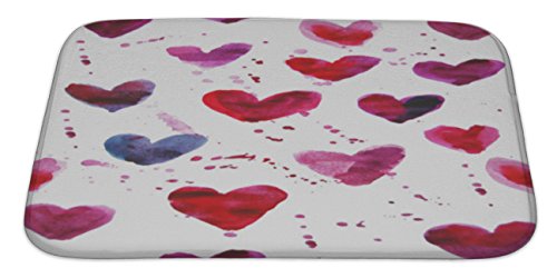 Gear New No Slip Microfiber Memory Foam Watercolor Hearts Pattern Bath Rug Mat, 34" X 21"