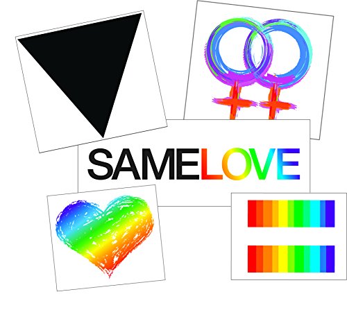 - 5 Designs, 2 Tattoos Each - Rainbow Equality Bars, Black Inverted Triangle, Rainbow Interlocking Venus, Rainbow Heart, SAMELOVE
