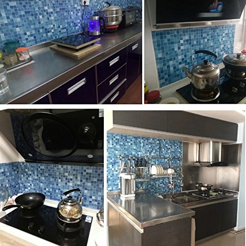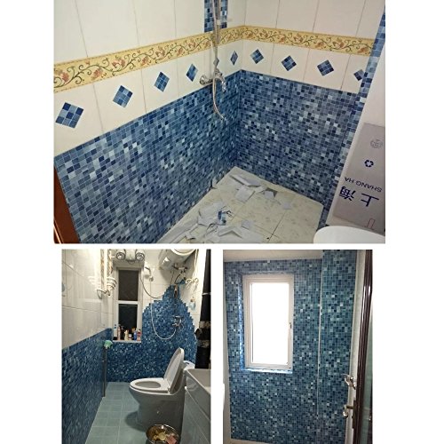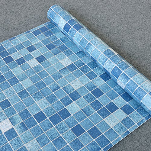 SimpleLife4U Blue Mosaic Contact Paper Removable Shelf Liner Night Stand Sticker 17.7 Inch by 9.8 Feet