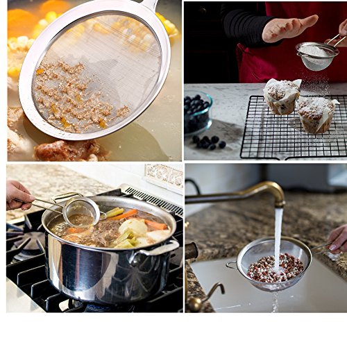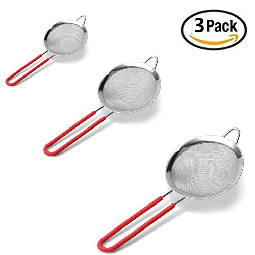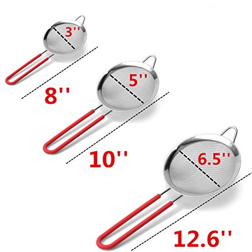 Yamde Food Strainer Set - Premium Fine Stainless Steel Fine Mesh Strainers, Colanders and Sifters Crafted for Quinoa & Amaranth with Comfortable Non Slip Silicone Handles - 3 Sizes
