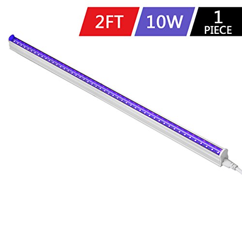 Byingo UV Black Light Fixtures 2ft 10W LED T5 Integrated Single Fixture Extendable Tube Bulb Blacklight for DJ Stage Dorm Party Club, Corded Included Built-in ON/OFF Switch Plug and Play, 1-Pack