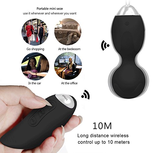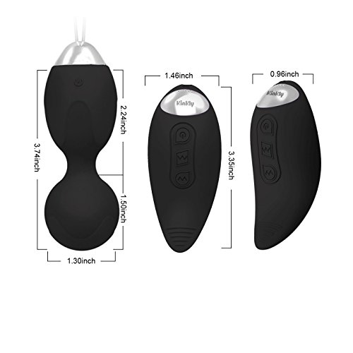Specifications Material: Medical Silicone Non-toxic ABS Kegel weights: length 3.74inch; diameter 1.3inch Remote control :length 3.35 inch Use time:2 hours Vibration mode:10 kinds Sound level:<50db Charging mode- USB charge Color: Black Package: 1×Kegel Weights, 1×remote controller, 2×charge line, 1×instruction 0