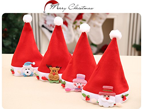 CSLU Pack of 4 Christmas Decorations Santa Claus Plush Hat Children Xmas Cartoon Hats Caps New Year's Gifts Home Party Supplies
