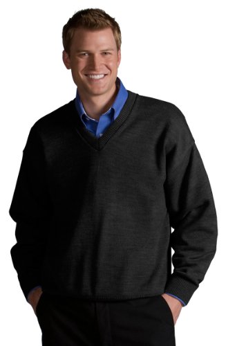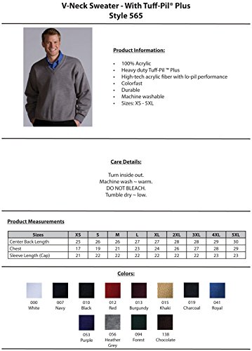 Binding : Apparel Product Description V-Neck Sweater is stylish and functional. Tuff Pil Plus® high-tech acrylic fiber with lo-pil performance, this vest is colorfast and durable. Perfect for arenas, theme museums, transit, or customer service. Embroiders well, 100% Acrylic, V-neck jersey stitch sweater, Tuff-Pil® Plus high performance acrylic, Lo-pil performance and colorfast, USA Made, Machine washable, Size: XS-5XL. 0