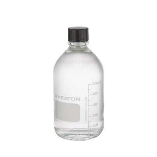 Wheaton Media Bottle, Clear Glass, Graduated With 33-430 Solid Black Phenolic 14B Rubber Lined Cap, Autoclavable