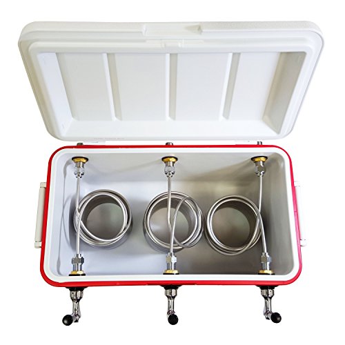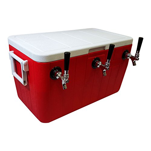 NY Brew Supply 50' Stainless Steel Coils Jockey Box Cooler with Triple Faucet, 48 quart, Red