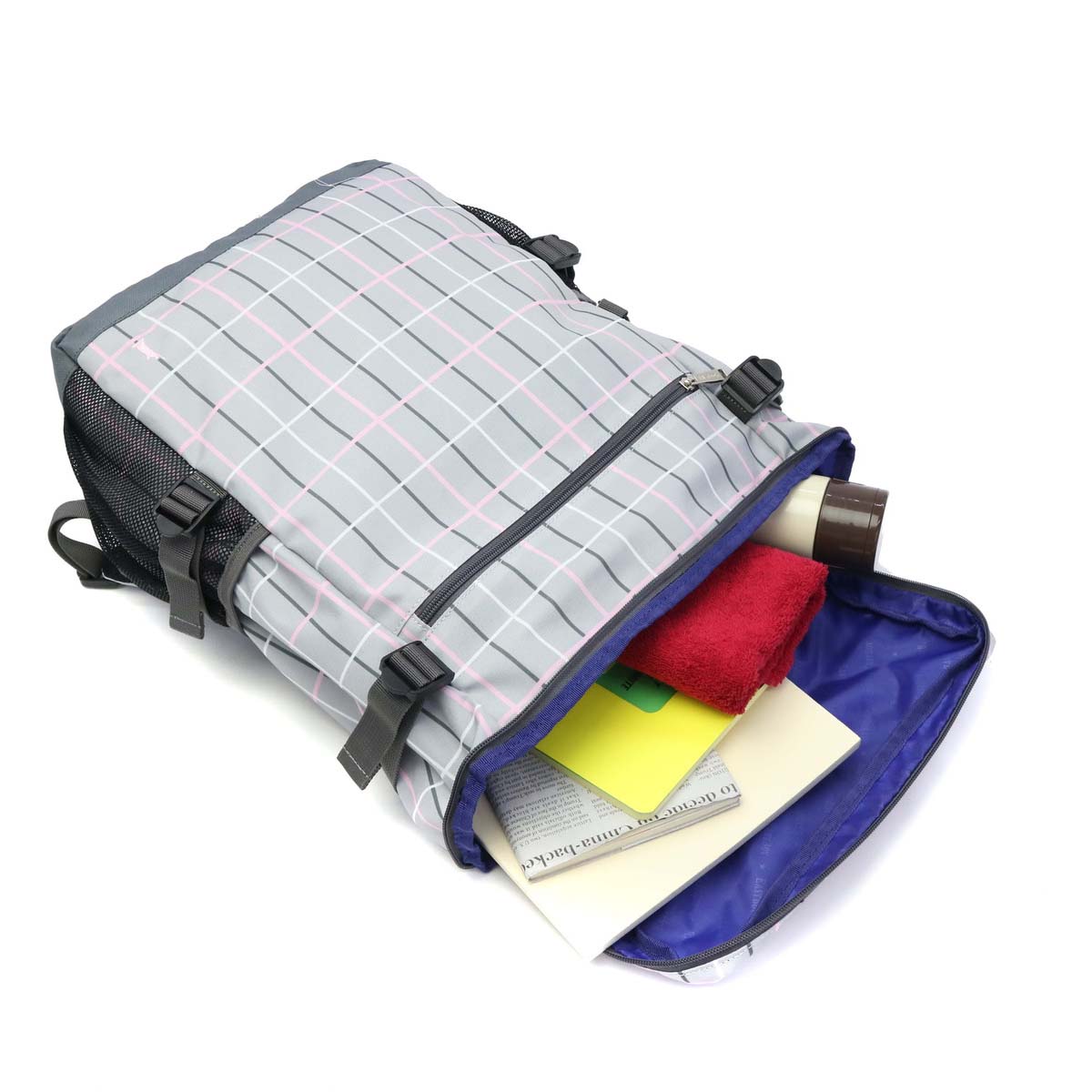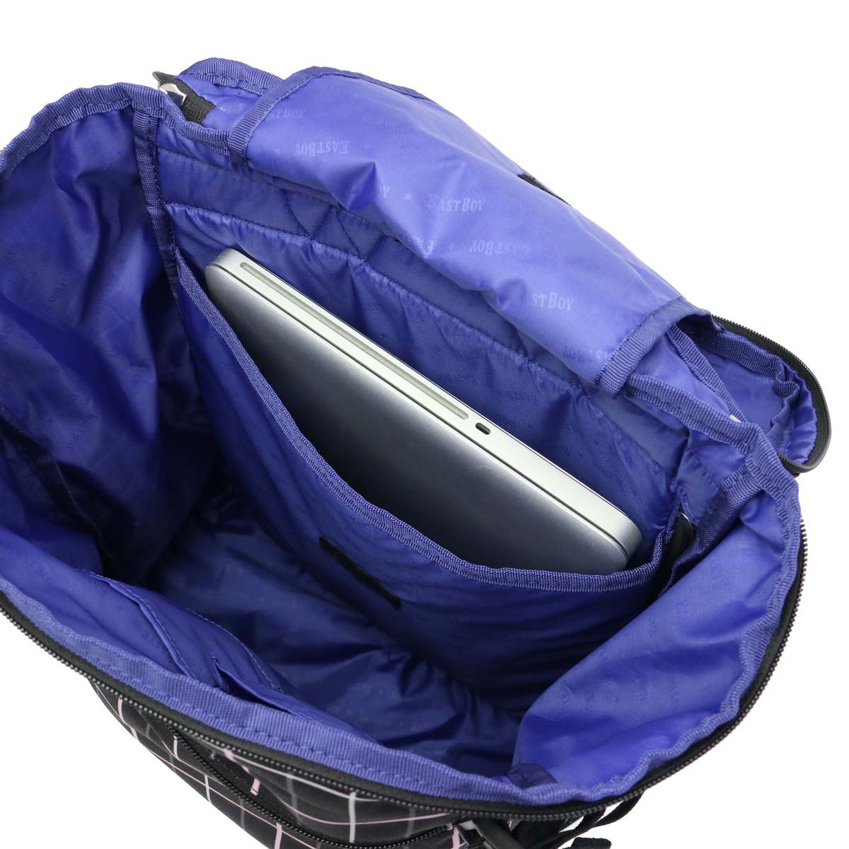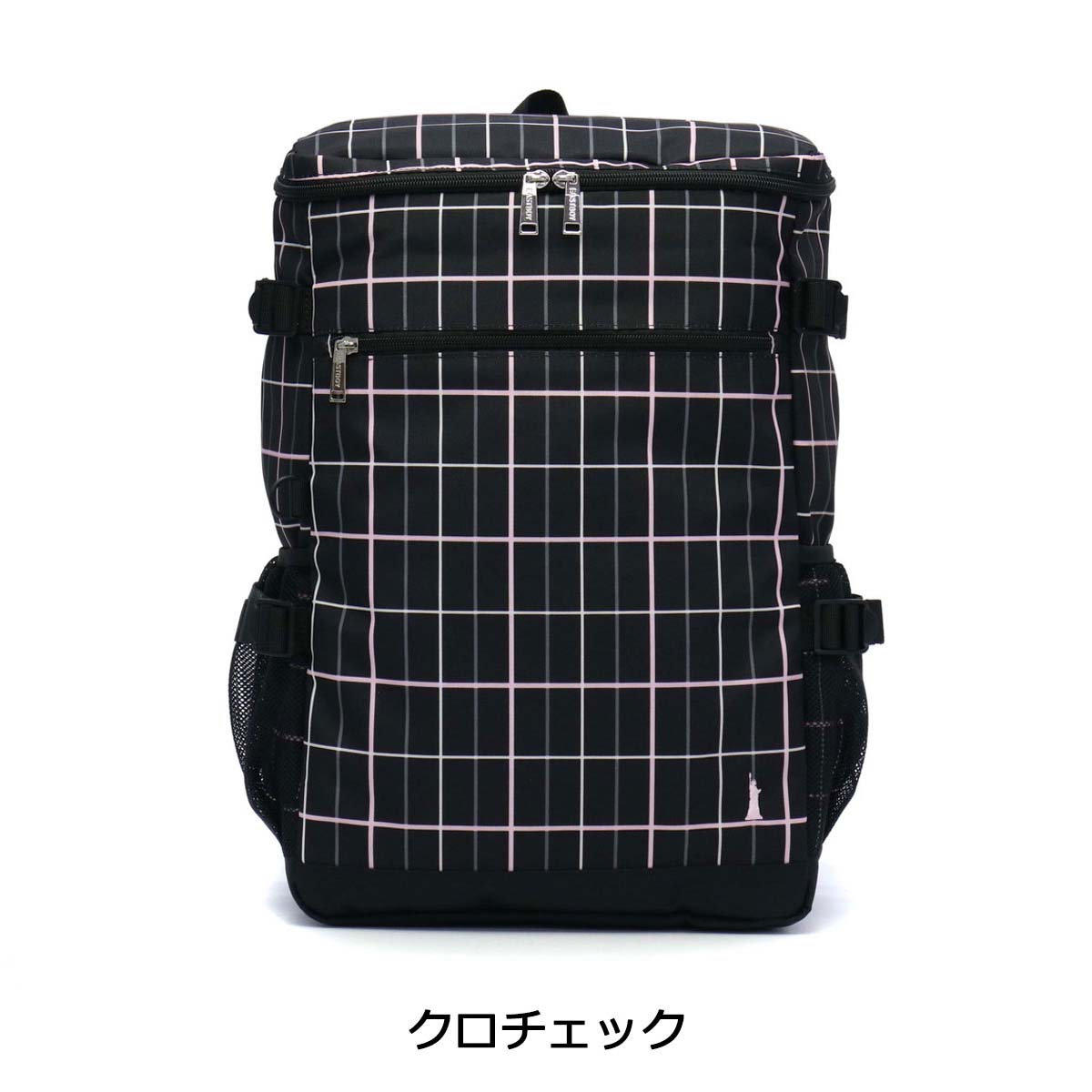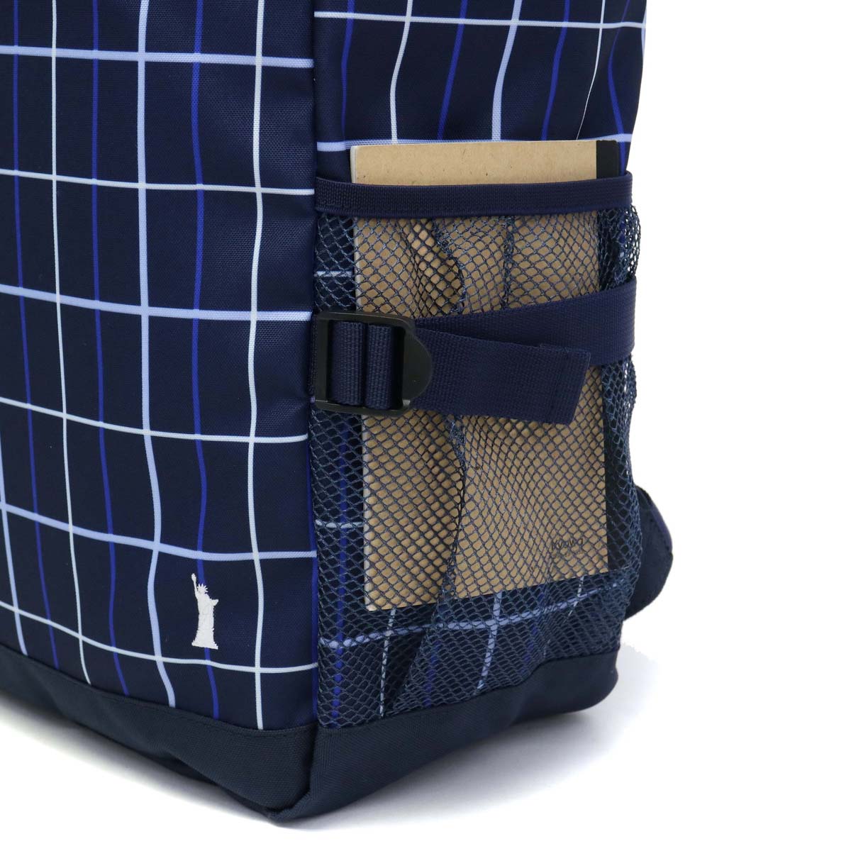 Trad base based casual brand "EAST BOY / East boy" rucksack with the Statue of Liberty as a motif. Check gray with pink or blue in the calm color ring of black · gray · navy draws cuteness.
