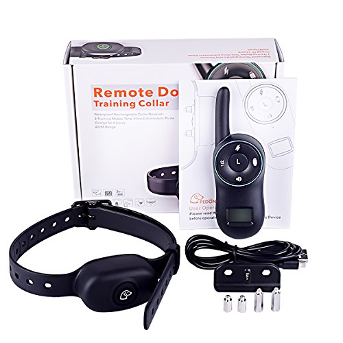 Features 1. Rechargeable Remote Transmitter and Collar Receiver 2. Waterproof Collar Receiver, your pet can swim in the water 3. Up to 500 meters remote control distance with no barriers 4. 5 intensity levels of static shock 5. 5 intensity levels of vibration. 6. Standard Tone 7. With LCD display, Convenience of easy-to-read LCD screen shows the stimulation level 8. Simple, ergonomic design layout 9. Quick and straightforward pairing process. 10. Capable of simultaneous control of two dogs (extra receiver is purchasable) 11. Adjustable TPU strap to accommodate any size of dog 12. Auto-off feature to conserve power when not in use to extend battery life Warning: Not for aggressive dogs. Do not use this product if your dog is aggressive, or if your dog is prone to aggressive behavior. Aggressive dogs can cause severe injury and even death to their owner and others. If you are unsure whether this product is appropriate for your dog, please consult your veterinarian or certified trainer. Common weight of dogs Large Dog (Body height above 61cm, Weight above 40kg) Medium Dog (Height 40.7-61cm, Weight 11-30kg) Small Dog (Height 25.5-40.7cm, Weight 4-10kg) Mini Dog (height under 25cm, Weight under 4kg) Frequency: 433.825MHz Transmitter: 3.7V 500ma Lip Receiver: 3.7V 500ma Lip 0