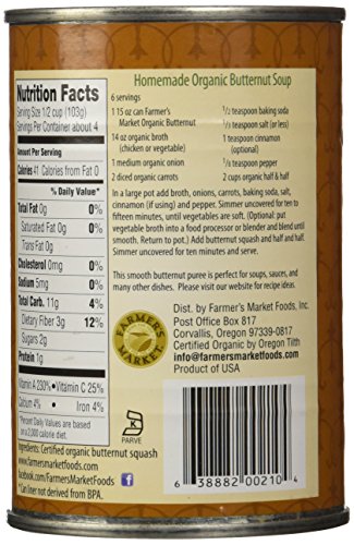 Farmer's Market Organic Canned Butternut Squash Puree, 15 Ounce (Pack of 12)