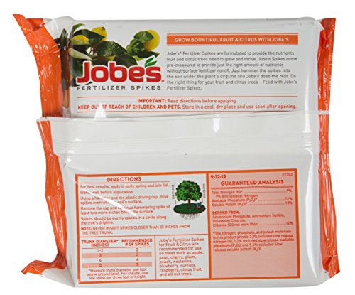 Jobe’s Fruit & Citrus Fertilizer Spikes 9-12-12 Time Release Fertilizer for All Fruit Trees, 5 Spikes per Package