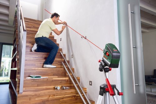 -. Feature : Der Kreuzlinienlaser PCL 20 von Bosch ermöglicht es Ihnen alles exakt auf die gewünschte Position zu bringen / Er erzeugt zwei gekreuzte Laserlinien, die je nach Betrieb einzeln oder zusammen (senkrecht zueinander), in einem Arbeitsbereich von bis zu 10 m, projiziert werden / Dabei arbeitet er selbstnivellierend, d.h. die Laserlinien sind immer zu 100 % gerade / Mit der praktischen Lotstrahlfunktion kann das Gerät zudem einen punktförmigen Laserstrahl senkrecht nach oben und unten projizieren / Mit dem mitgelieferten Stativ lässt sich der PCL 20 schnell und einfach auf eine maximale Höhe von 1,5 m ausrichten Mit dem mitgelieferten Stativ lässt sich der PCL 20 schnell und einfach auf eine maximale Höhe von 1,5 m ausrichten